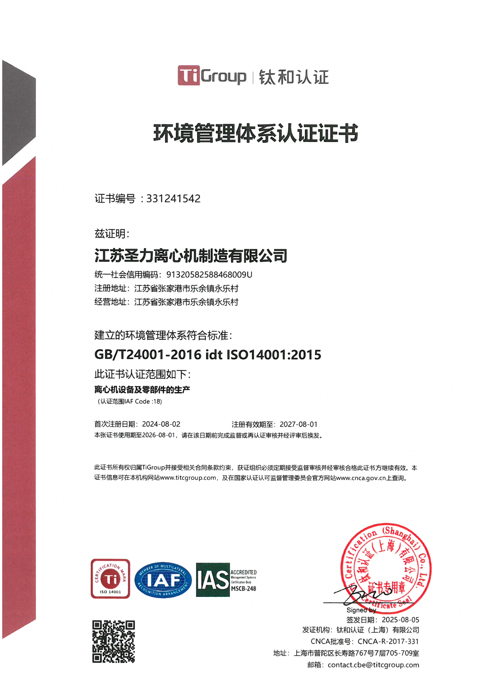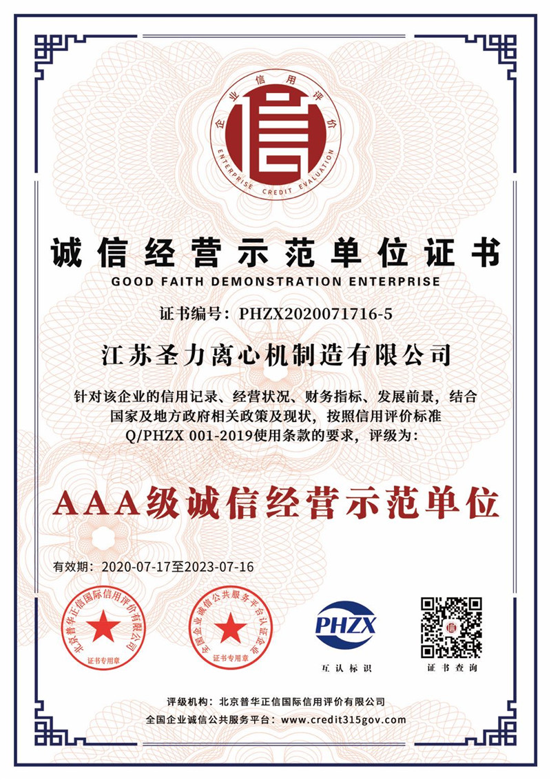 江蘇圣力離心機制造有限公司是國內(nèi)分離機械行業(yè)中主要的離心機生產(chǎn)企業(yè),對離心機的研究、設計、制造有多年的歷史,擁有齊全的設備、完善的檢測手段。公司已通過IS09000國際質(zhì)量體系認證、ISO14001環(huán)境管理體系認證、ISO45001:2018職業(yè)健康安全管理體系認證和CE認證,是江蘇省高新技術企業(yè),曾榮獲國家和地方多項榮譽稱號。